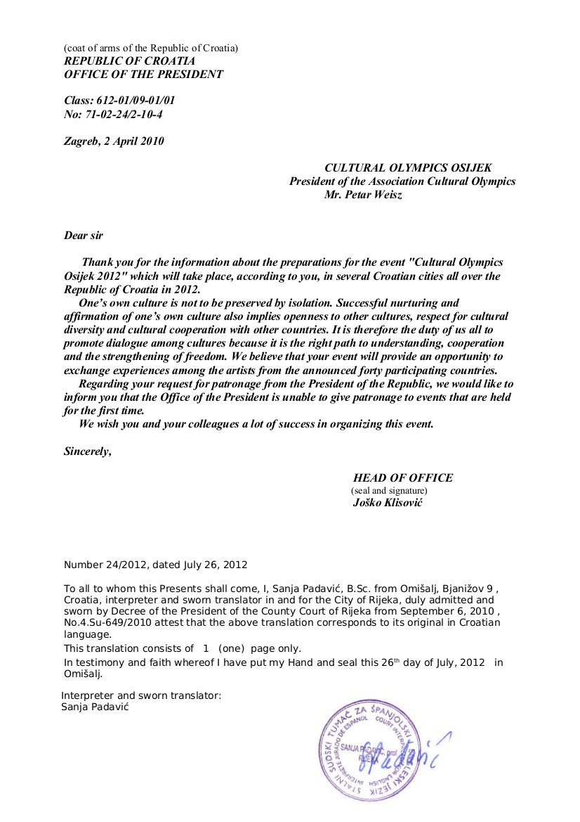 Office of the President of the Republic of Croatia - (English)